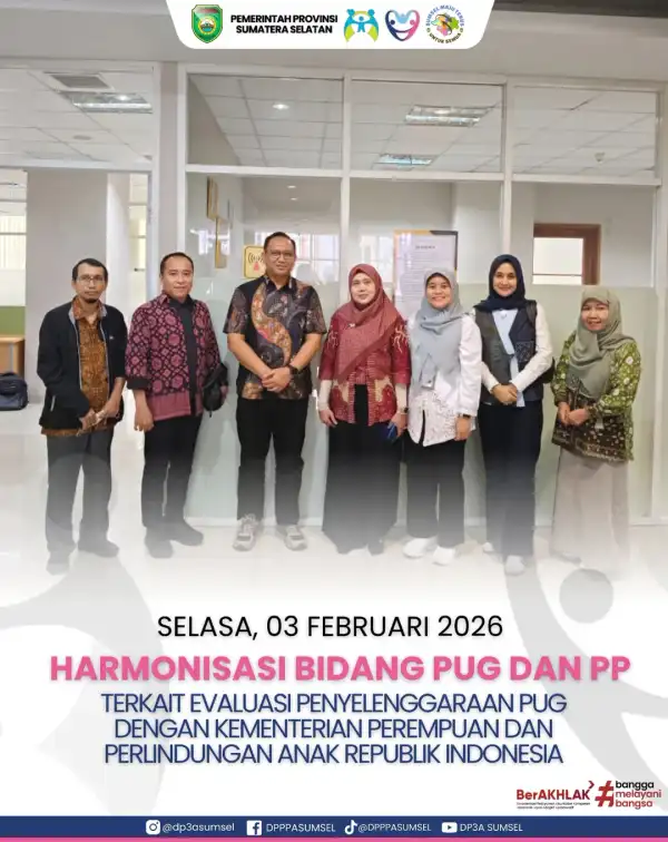 Jakarta — Bidang Pengarusutamaan Gender (PUG) dan Pemberdayaan Perempuan (PP) Provinsi Sumatera Selatan melakukan harmonisasi dan diskusi bersama Kementerian Pemberdayaan Perempuan dan Perlindungan Anak Republik Indonesia (KemenPPPA RI) terkait pengisian Evaluasi Mandiri Penyelenggaraan Pengarusutamaan Gender (PUG) Tahun 2024 dan 2025. Kegiatan tersebut dilaksanakan pada Selasa (3/2/2026).