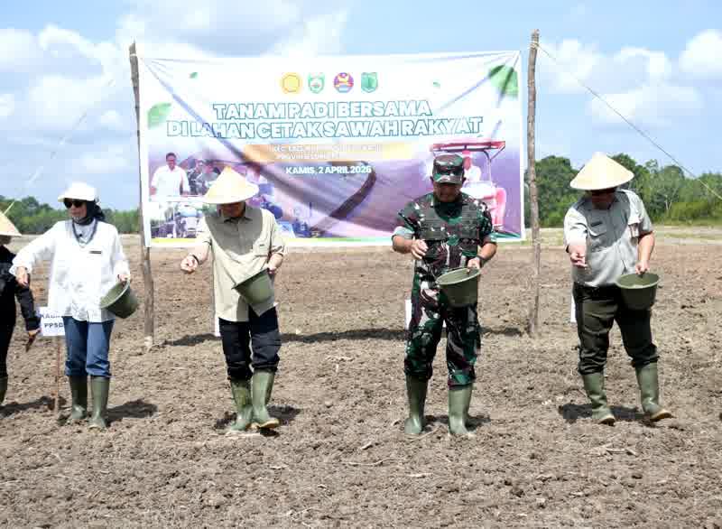 JURNAL10, MUBA – Komandan Korem 044/Garuda Dempo, Brigjen TNI Khabib Mahfud, S.I.P., M.M., menghadiri kegiatan tanam padi di lahan CSR (Cetak Sawah Rakyat) yang berlokasi di Desa Teluk, Kecamatan Lais, Kabupaten Musi Banyuasin, Kamis (2/4/2026).