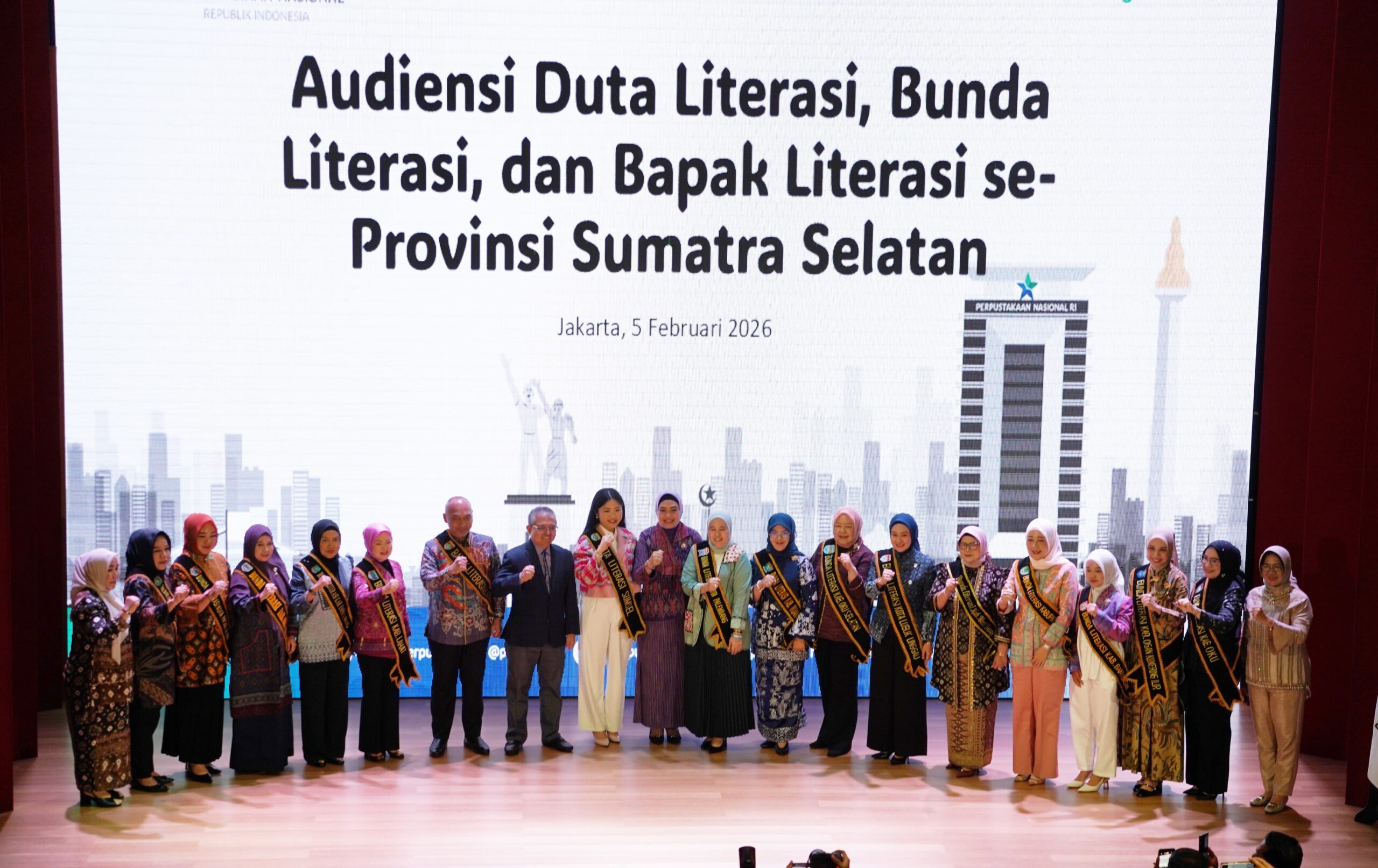 JAKARTA – Semangat membangun peradaban melalui literasi kembali ditorehkan oleh Provinsi Sumatera Selatan. Dipimpin langsung Duta Literasi Sumsel sekaligus Anggota DPD/MPR RI, dr. Hj. Ratu Tenny Leriva, MM., rombongan yang terdiri dari Bunda dan Bapak Literasi dari 17 kabupaten/kota melakukan audiensi dengan Perpustakaan Nasional Republik Indonesia (Perpusnas RI), Kamis (5/2/2026), di Auditorium Perpusnas RI, Jakarta.