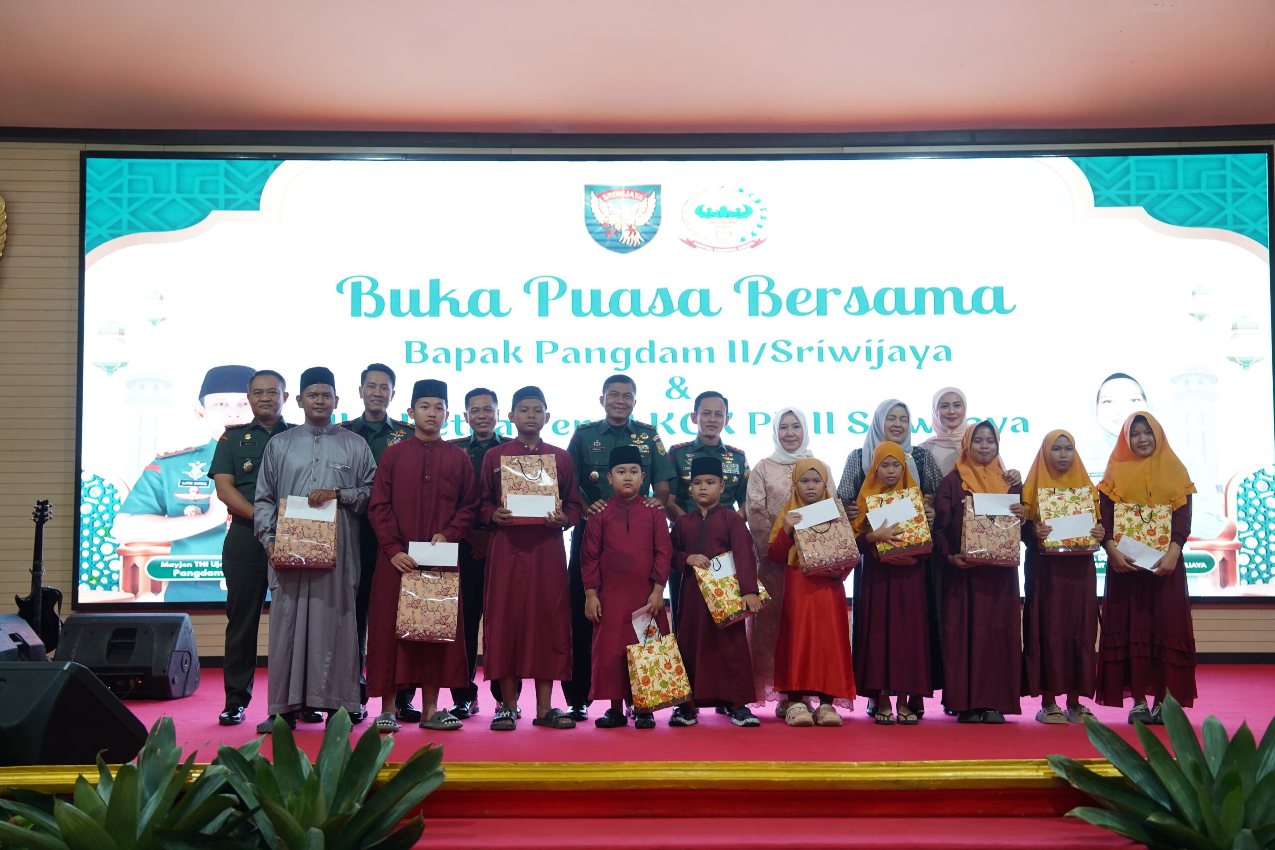 Sisi religius dan kepedulian sosial juga menjadi sorotan utama dalam agenda ini. Kodam II/Sriwijaya turut mengundang anak-anak dari Panti Asuhan Siti Aisyah Palembang untuk berbagi kebahagiaan. Kehadiran mereka memberikan nuansa keberkahan tersendiri di tengah keluarga besar prajurit Sriwijaya yang berkumpul di Gedung Sudirman.
