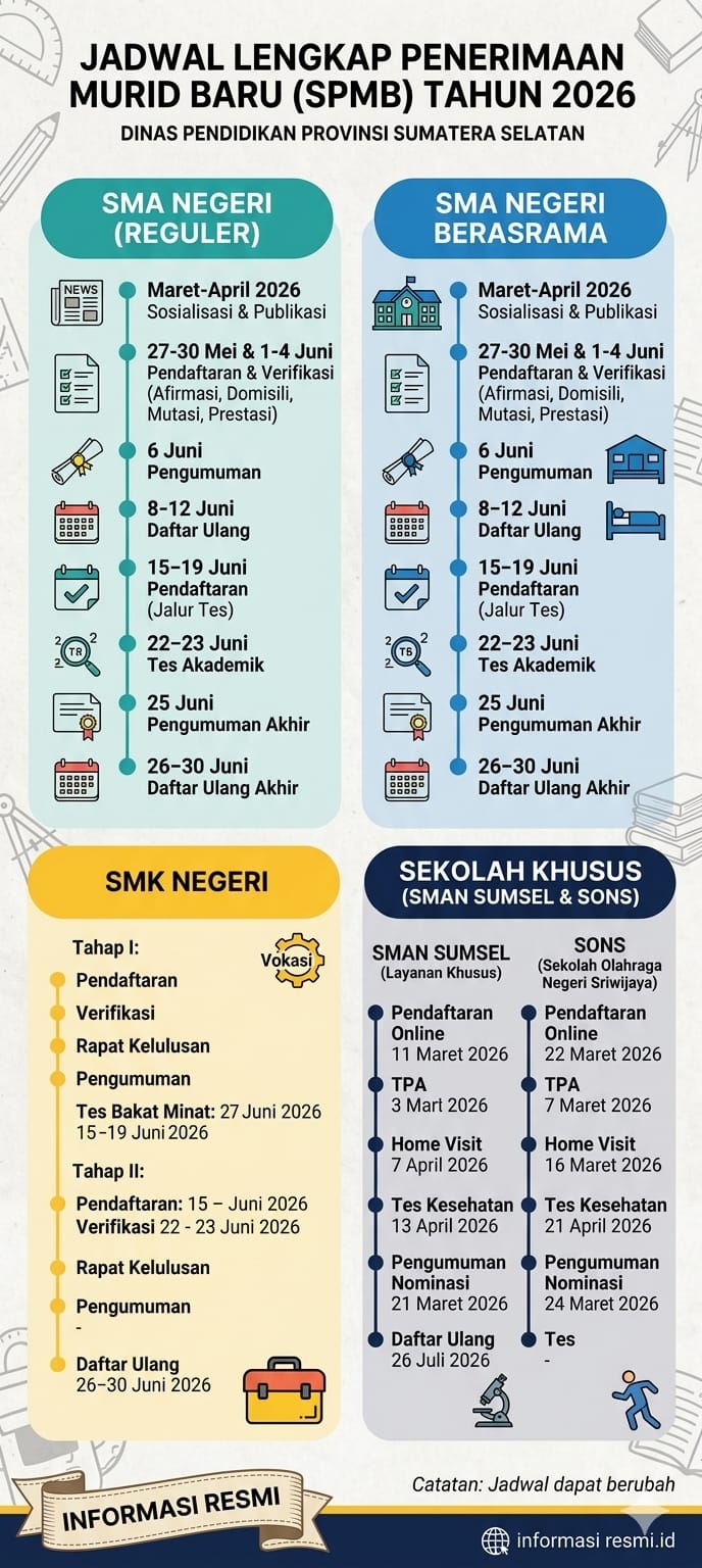Sekolah Khusus: Untuk SONS dan SMAN Sumsel, proses verifikasi dan tes fisik sedang berjalan intensif pada bulan April ini.