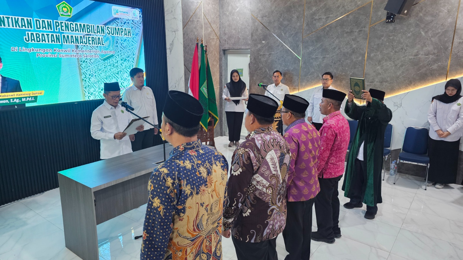 Prosesi pelantikan ini menandai rotasi strategis di jajaran pimpinan tingkat kabupaten dan bidang di lingkungan Kanwil Kemenag Sumsel guna memperkuat kinerja birokrasi.