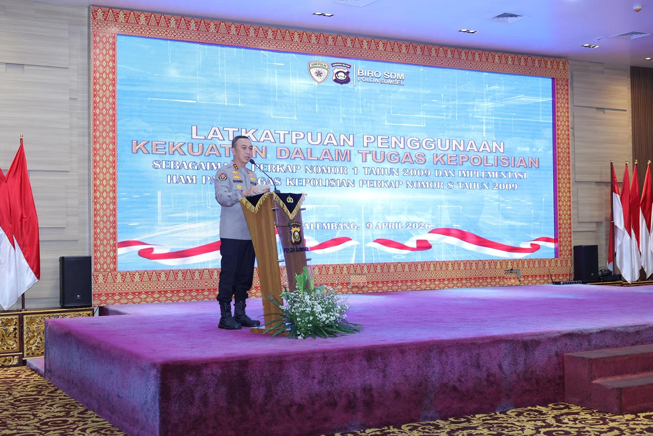 Penegasan tersebut disampaikan dalam kegiatan pelatihan penggunaan kekuatan kepolisian dan HAM yang digelar di Gedung Presisi Mapolda Sumsel, Kamis (9/4/2026). Kegiatan ini diikuti oleh seluruh Pejabat Utama (PJU) serta Kapolres jajaran, baik secara langsung maupun daring.