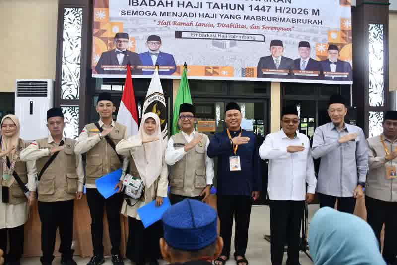 JURNAL10.COM, PALEMBANG —  Operasional pemberangkatan jemaah haji Kelompok Terbang (Kloter) 4 Embarkasi Palembang berjalan lancar pada Minggu (26/4/2026). Berdasarkan data manifes, tercatat sebanyak 444 jemaah awalnya memasuki Asrama Haji Sumsel untuk menjalani proses pemeriksaan akhir. Namun, pada saat keberangkatan, hanya 439 jemaah yang terbang menuju Tanah Suci, sementara 5 jemaah lainnya terpaksa ditunda karena faktor kesehatan.