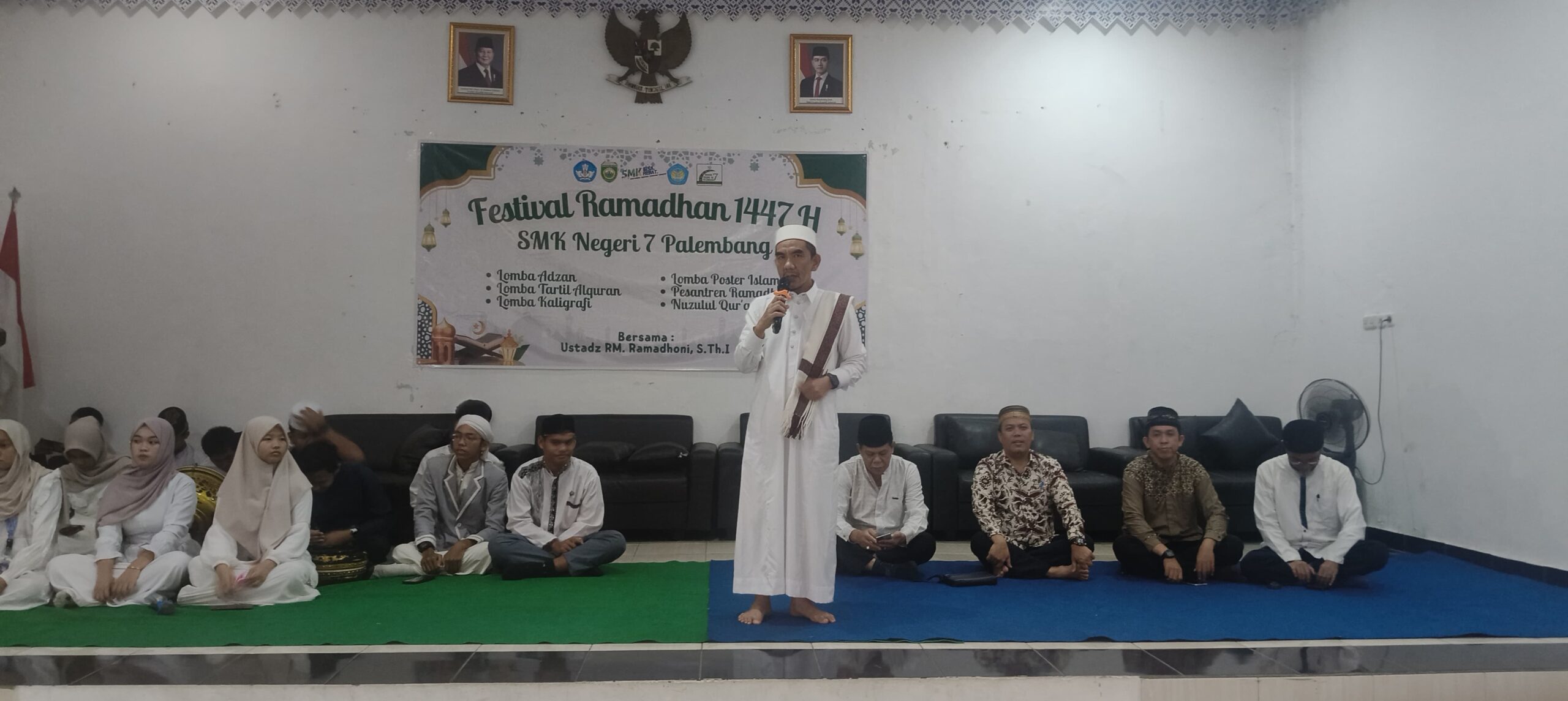 Festival Ramadan tersebut menghadirkan berbagai perlombaan dan kegiatan bernuansa Islami, di antaranya lomba azan, tartil Al-Qur’an, kaligrafi, lomba poster digital, pesantren Ramadan, serta peringatan Nuzul Quran. Seluruh rangkaian kegiatan diselenggarakan oleh Rohani Islam (Rohis) SMKN 7 Palembang.
