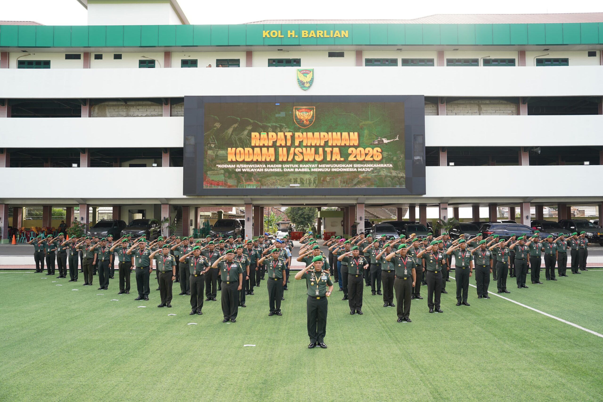 JURNAL10, PALEMBANG – Pangdam II/Sriwijaya, Mayjen TNI Ujang Darwis, M.D.A., secara resmi membuka sekaligus memimpin langsung Rapat Pimpinan (Rapim) Kodam II/Sriwijaya Tahun Anggaran 2026. Kegiatan strategis ini berlangsung di Gedung Sudirman Makodam II/Sriwijaya, Sabtu (28/02/2026), dan dihadiri oleh para Pejabat Utama dan Unsur Pimpinan Satuan di Jajaran Kodam II/Sriwijaya.