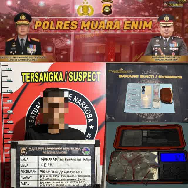 Polres Muara Enim Amankan Pengedar Sabu 15 Paket di Desa Tambangan Kelekar