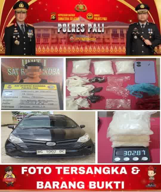 JURNAL10.COM, PALI — Polda Sumatera Selatan melalui jajaran Polres Penukal Abab Lematang Ilir kembali menunjukkan ketegasannya dalam memberantas peredaran gelap narkotika. Personel Satresnarkoba Polres PALI berhasil menggagalkan upaya peredaran sabu dalam jumlah besar dengan menangkap seorang kurir lintas kabupaten berinisial M (29) beserta barang bukti seberat bruto 302,87 gram.