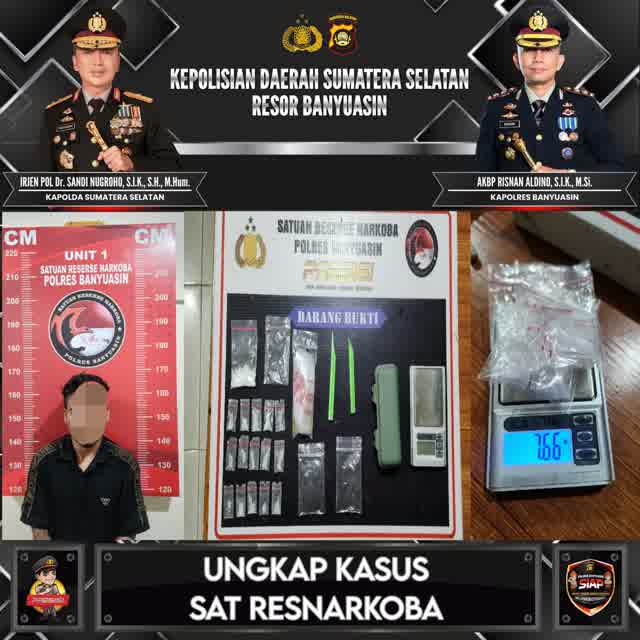 JURNAL10, BANYUASIN — Polda Sumatera Selatan melalui Satresnarkoba Polres Banyuasin kembali menunjukkan respons cepat dalam memberantas peredaran narkotika dengan mengungkap kasus pengedar sabu di wilayah Kecamatan Betung.