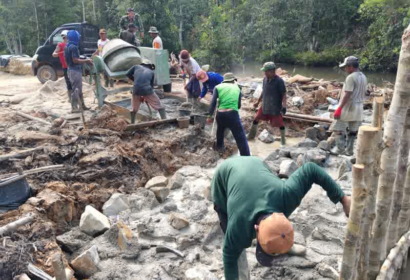Personel Kodim 0432/Bangka Selatan bersama masyarakat setempat bahu-membahu mempercepat akses transportasi antar-desa tersebut. Kerja sama yang solid ini menjadi bukti nyata kemanunggalan TNI dengan rakyat, di mana setiap tetes keringat yang mengalir ditujukan untuk kesejahteraan dan kemajuan infrastruktur di wilayah Bangka Selatan.
