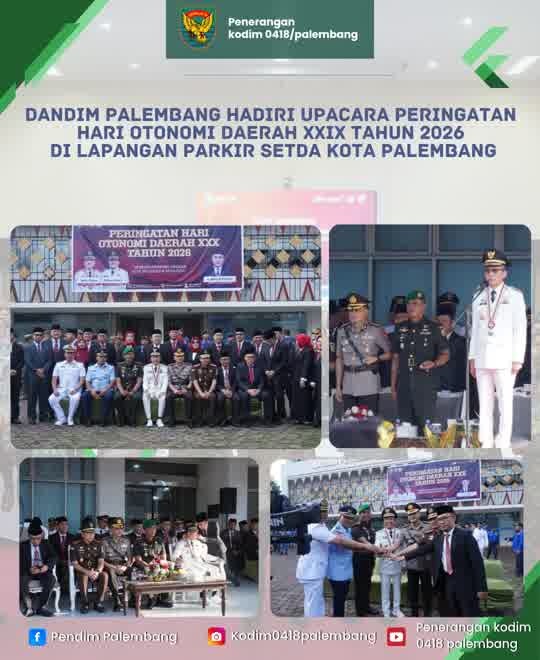 Sementara itu, Dandim 0418/Palembang Kolonel Arh Erik Novianto,S.sos menyampaikan bahwa momentum Hari Otonomi Daerah harus dimaknai sebagai penguatan sinergi antara pemerintah daerah dan seluruh elemen, termasuk TNI dan Polri.